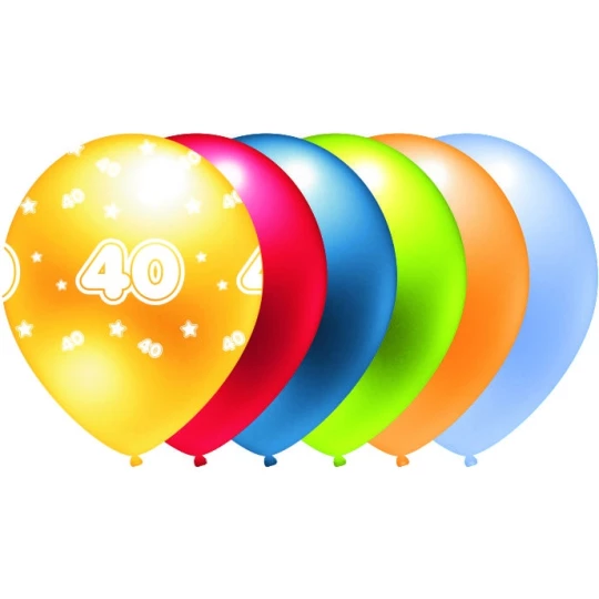 Kolorowe BALONY urodzinowe z cyfrą 40 zestaw 5 sztuk GO PARTY
