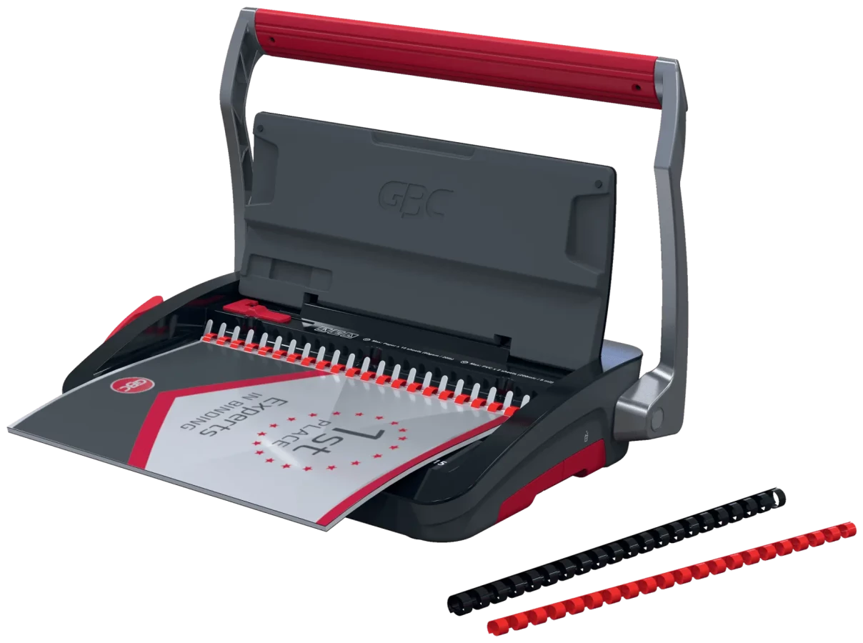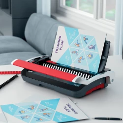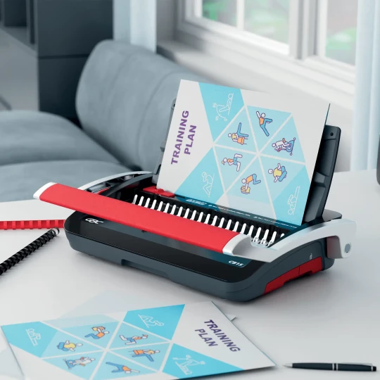 - Binduje do 165 kartek A5/A4 (80 g/m2) przy użyciu grzbietów o średnicy 19 mm.