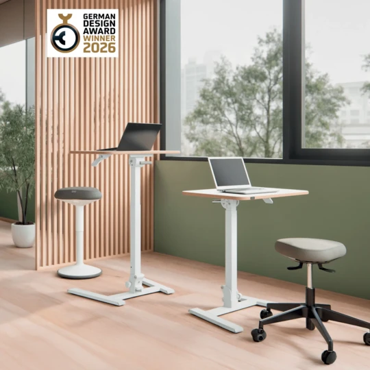 Wyobraź sobie ergonomiczne biurko pod laptopa do pracy w pozycji siedzącej i stojącej, zaprojektowane tak, aby idealnie pasowało do Twojego stylu życia i do nawet najmniejszych, wykorzystywanych tymczasowo, przestrzeni.