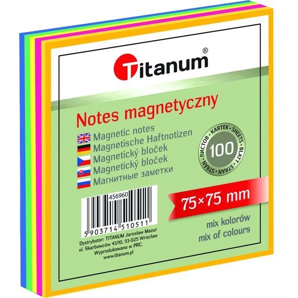 Bloczek magnetyczny mix kol. neonowy 75x75mm 100k. 456960 TITANUM