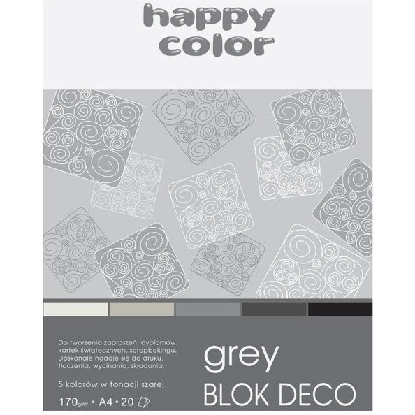 Blok DECO GREY HAPPY COLOR A4 20ark.170g 5 ko lorów HA 3717 2030-082
