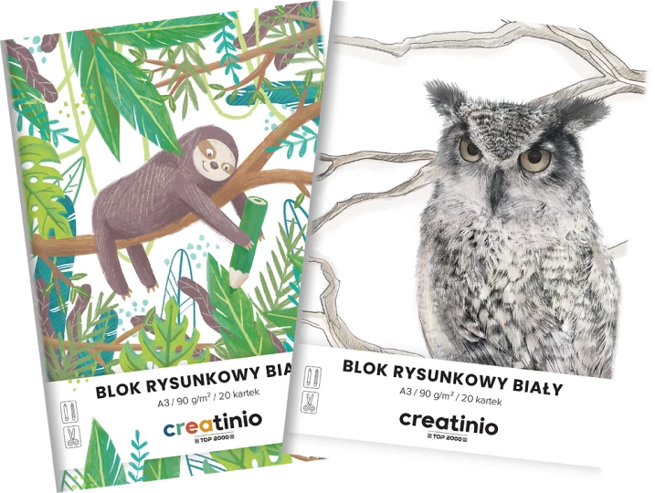 Bloki rysunkowe Creatinio są doskonałe do różnego rodzaju prac plastycznych. Gładki, biały papier jest odporny na częste ścieranie gumką. Dzięki temu błędy i zmiany koncepcji można dowolnie poprawiać, bez obniżania estetyki pracy. Okładki bloków zostały zaprojektowane tak, aby młodsi i starsi uczniowie mogli wybrać coś odpowiedniego dla siebie.