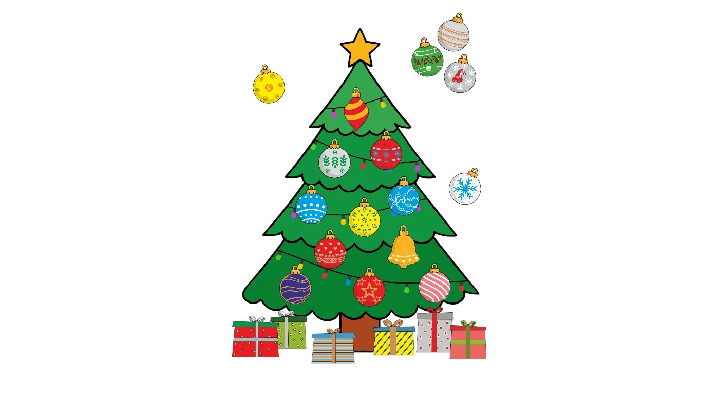 - zestaw kreatywny składa się z dwóch magnetycznych arkuszy – z choinką i prezentami (320 x 400 mm) oraz ozdobnymi bombkami (200 x 320 mm)