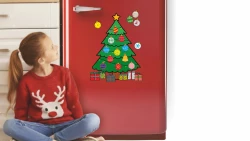 - gotową choinkę wystarczy umieścić na lodówce, tablicy magnetycznej lub innej metalowej powierzchni i dowolnie dekorować – każdego dnia inaczej!