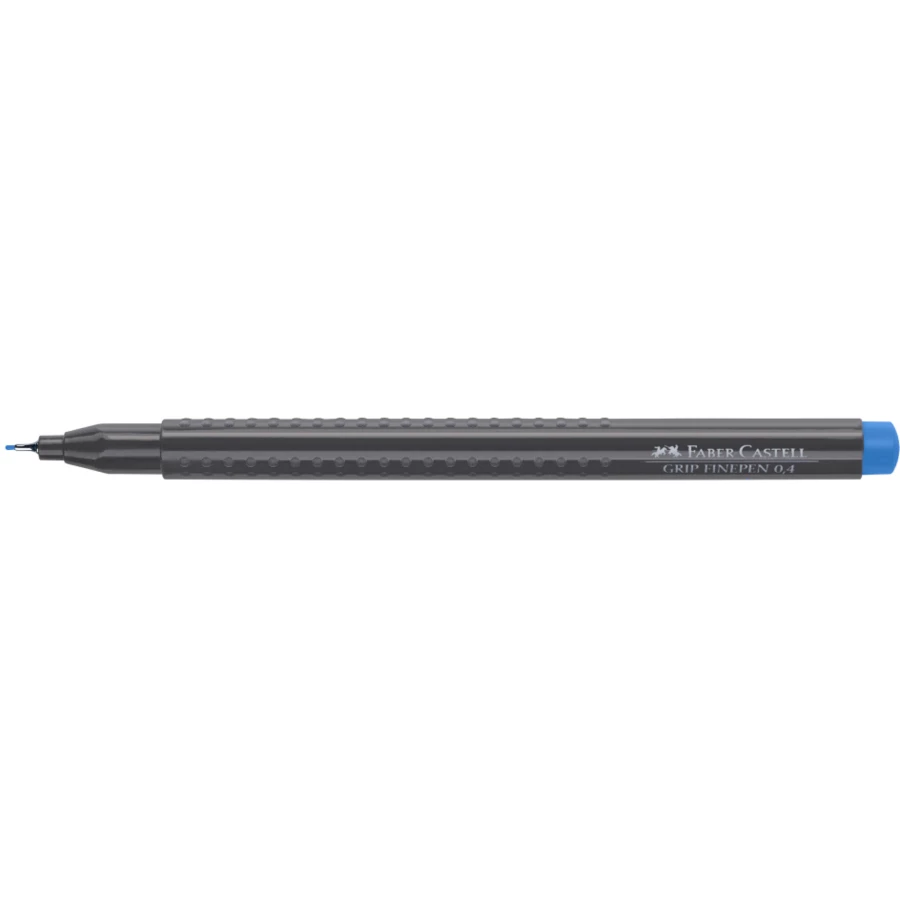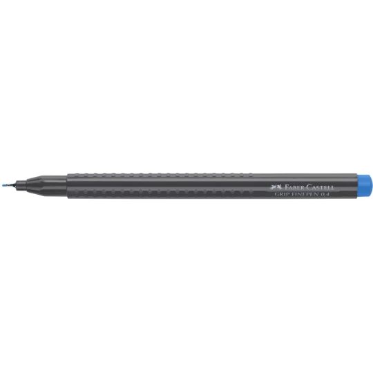Cienkopis Grip Faber-Castell w kolorze niebieskim. Niezawodny, idealny do pisania, rysowania, szkicowania oraz cieniowania. Posiada tusz na bazie wody i barwników naturalnych. Spieralny z większości tkanin. Długa i odporna końcówka fibrowa w metalowej obudowie doda precyzji we współpracy z szablonami i linijkami. Ergonomiczny trójkątny kształt, miękka strefa uchwytu i charakterystyczna dla tej serii opatentowana strefa Grip z kropeczkami zapewniają wysoki komfort i wygodę użytkowania. Szerokość linii pisania: 0.4 mm. Odpowiedni zarówno dla prawo- jak i leworęcznych. Plastikowe części produktu wykonane w co najmniej 56% z tworzywa sztucznego pochodzącego z recyklingu.