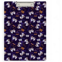 Wykonany z kolorowej folii PVC; środek usztywniony tekturą; wyposażony w sprężysty mechanizm zaciskowy służący do przytrzymywania kartek; podkładka pojedyncza; format A3;