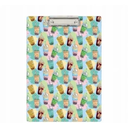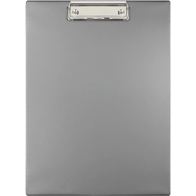 Wykonany z kolorowej folii PVC; środek usztywniony tekturą; wyposażony w sprężysty mechanizm zaciskowy służący do przytrzymywania kartek; podkładka pojedyncza; format A4;