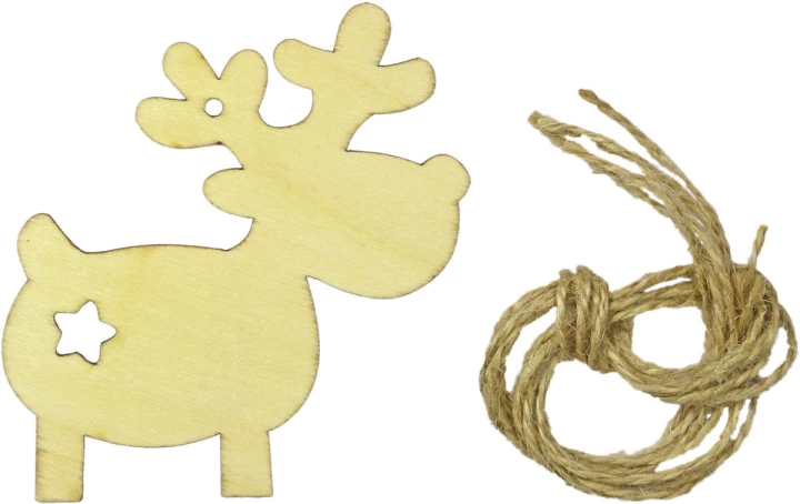 Drewniane zawieszki - renifery o wymiarze 80 x 85 mm + sznurek jutowy. 8 sztuk.