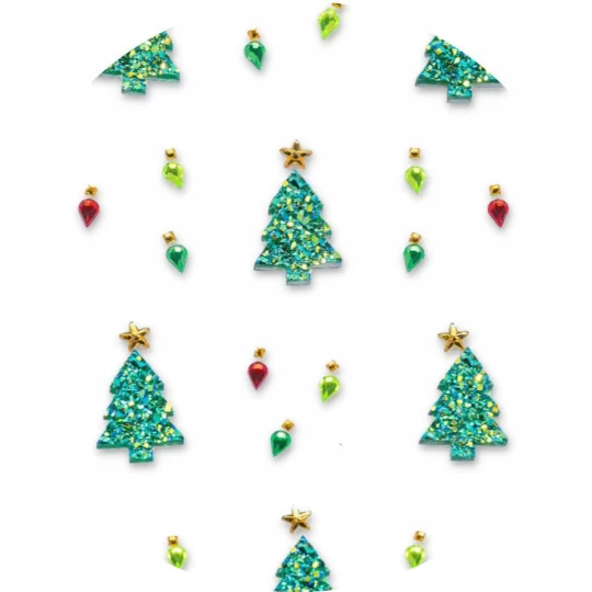 Komplet samoprzylepnych dżetów w kształcie zielonych choinek i porozrzucanych bombek. Idealnie nadadzą się do ozdabiania pamiętników, kartek okolicznościowych, zaproszeń, bukietów, prezentów, etui do telefonów, nawet elementów garderoby czy mebli. Kryształki można swobodnie przyklejać do takich materiałów jak papier, drewno, szkło, plastik oraz tkanina. Dzięki nim zaserwujesz dziecku wspaniałą kreatywną zabawę, a przy okazji spędzicie czas razem.
