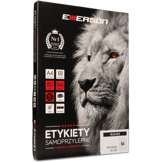 Etykiety są wielozadaniowym produktem marki Emerson, którego cechuje najwyzsza jakośc oraz niezwykla wytrzymalośc. Z latwością mozna go wykorzystac jako etykiety inwentaryzacyjne, jako korespondencja seryjna, a takze do oznaczania teczek, segregatorów, dokumentów etc.