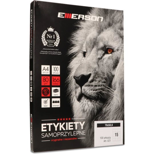 Etykiety są wielozadaniowym produktem marki Emerson, którego cechuje najwyzsza jakośc oraz niezwykla wytrzymalośc. Z latwością mozna go wykorzystac jako etykiety inwentaryzacyjne, jako korespondencja seryjna, a takze do oznaczania teczek, segregatorów, dokumentów etc.
