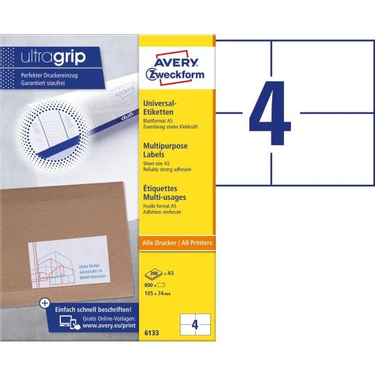 Etykiety ZF A5 105x74mm 6133 (200) białe uniwersalne AVERY ZWECKFORM