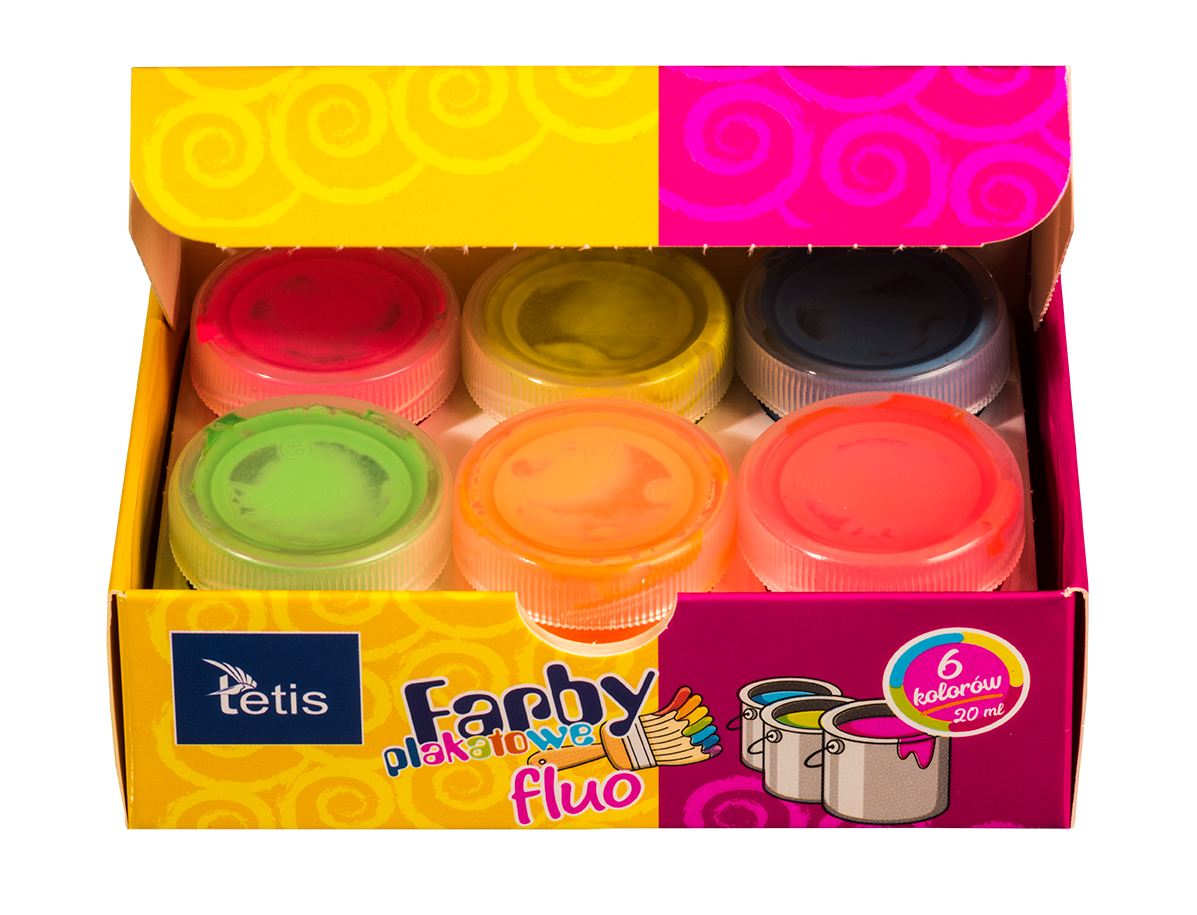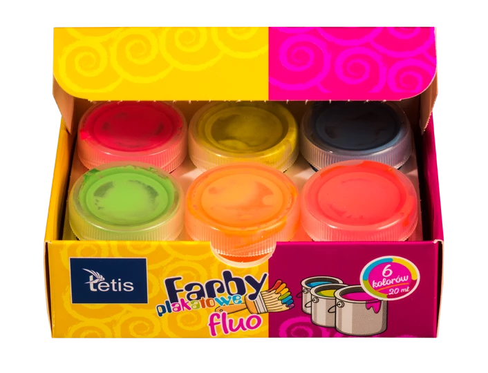 Farby plakatowe fluo 20ml. 6 kolorów KF002-A TETIS