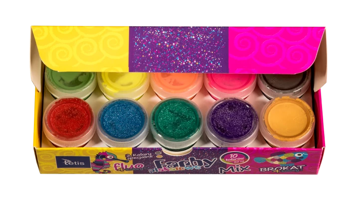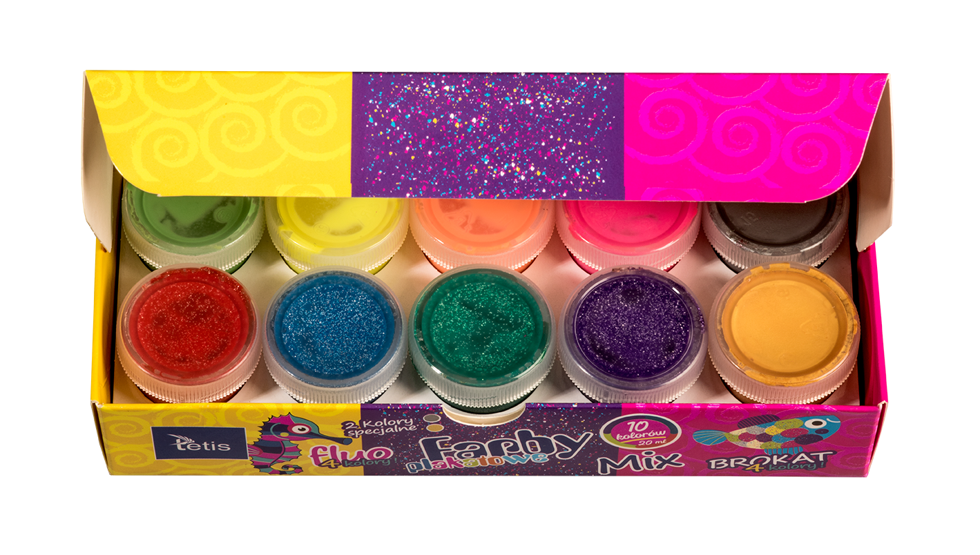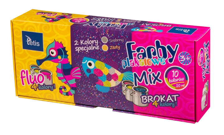 Farby plakatowe mix fluo/brokat 10ml. 10 kolorów KF004-C TETIS