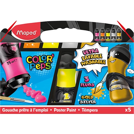 Farby SUPERPOWER 5X75ml fluo 3szt.+metalik 2 szt. butelki MAPED 810012