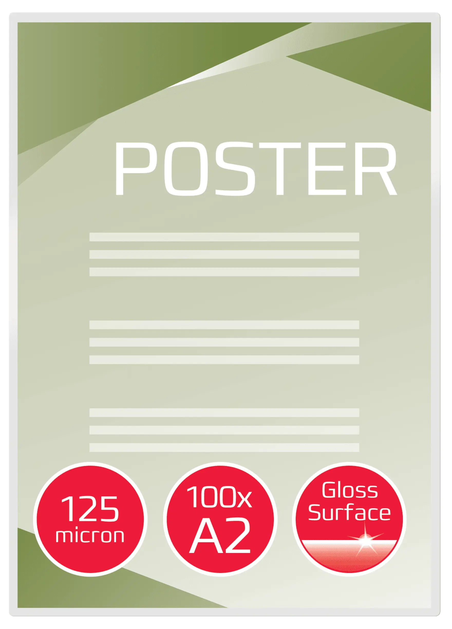 Wygodne rozwiązanie do ochrony i wzmocnienia przekazu najważniejszych stron prezentacji, listów referencyjnych, kart produktów, ogłoszeń itp. Format A2, 2 x 125 mikronów, z połyskiem. Opakowanie: 100 szt.