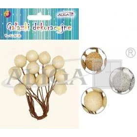 Gałązki ze złotymi kulkami. Idealnie sprawdzą się, kiedy zastosujesz je do stworzenia świątecznego stroika, wieńca zawieszonego na drzwiach czy do ozdobienia prezentów lub choinki. Doskonały dodatek do prac ręcznych i nie tylko. Dekoracje stworzone wraz z tymi gałązkami będą miały niepowtarzalny świąteczny klimat. Posiadają one elastyczny drucik, dzięki któremu łatwo przymocujesz ją do różnych dekoracji.