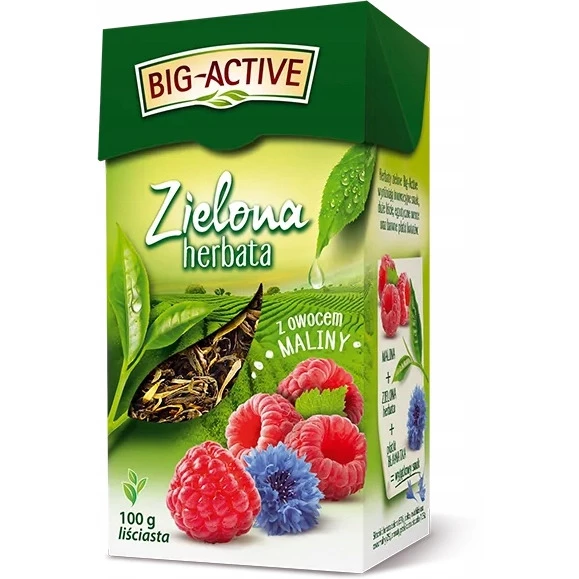 Herbata BIG-ACTIVE zielona liściasta 100g z owocem maliny