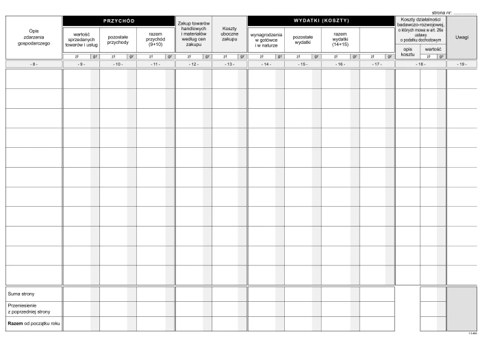 - Zastosowanie: podatnicy prowadzący księgę przychodów i rozchodów