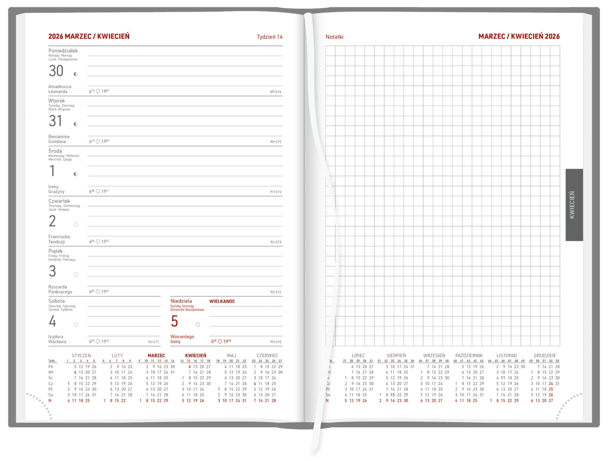 Kalendarz A5 Aluminium STANDARD tygodniowy z notesem p.biały 237 A5TNB srebrny Wokół Nas