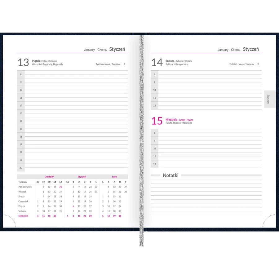 Kalendarz A4 Vivella UNIWERSALNY dzienny p.biały 238 A4DB czarny Wokół Nas