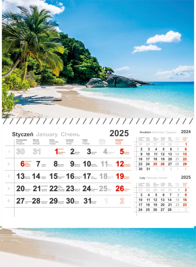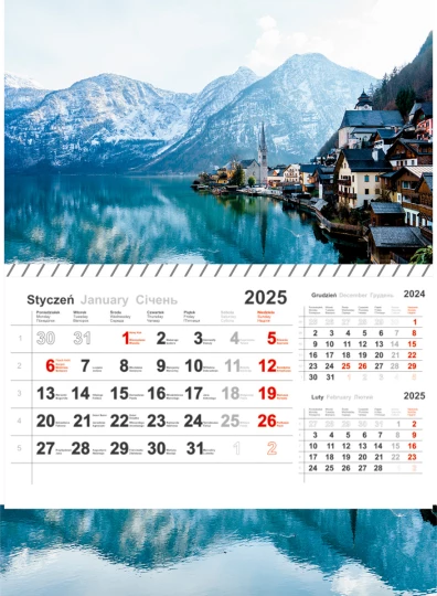 - Wymiar kalendarza: wys. 430 mm, szer. 310 mm.