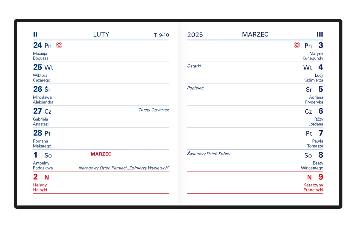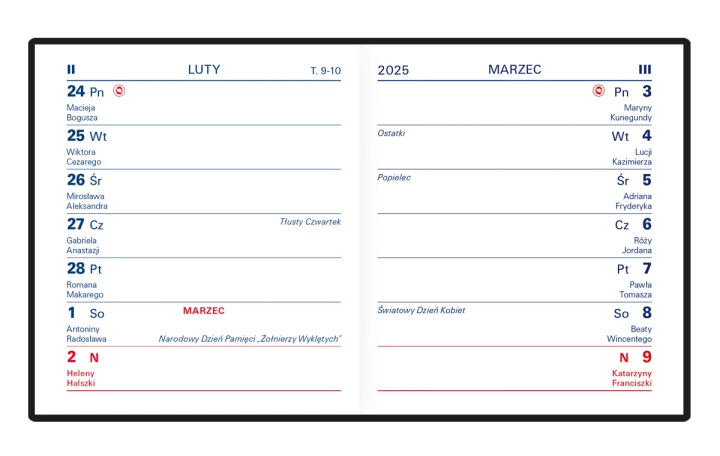 - Układ: tydzień na stronie
