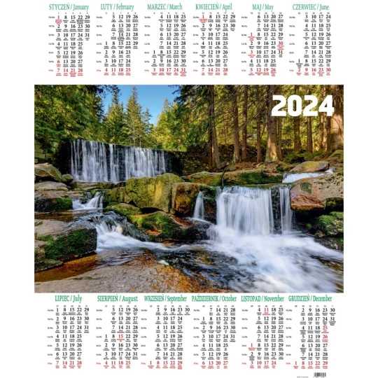 Kalendarz plakatowy A1 wyróznia sie odpowiednio dobranym zdjeciem oraz przejrzystym kalendarium . Caloroczny uklad kalendarium jest bardzo praktyczny.