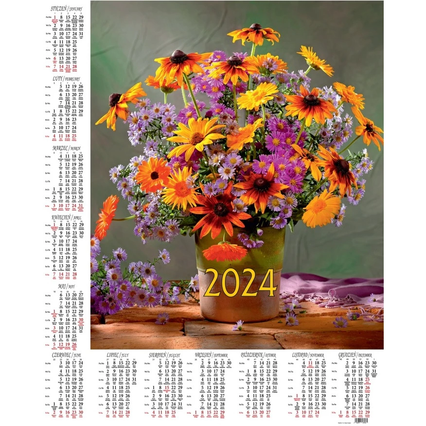 Kalendarz plakatowy A1 wyróznia sie odpowiednio dobranym zdjeciem oraz przejrzystym kalendarium . Caloroczny uklad kalendarium jest bardzo praktyczny.