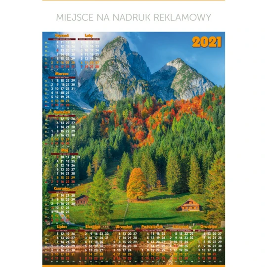 Kalendarz plakatowy B1  wyróznia sie odpowiednio dobranym zdjeciem oraz  przejrzystym kalendarium