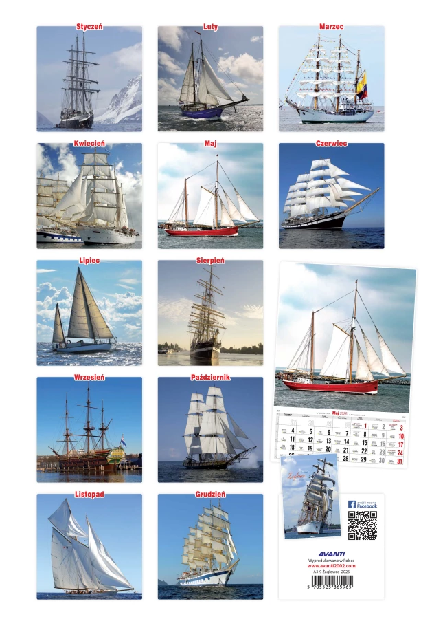 Kalendarz ścienny duży ŻAGLOWCE A3-9 AVANTI