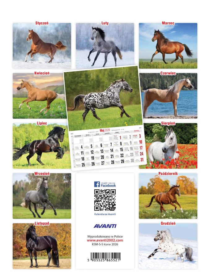 Kalendarz ścienny mały KONIE KSM-S-5 AVANTI