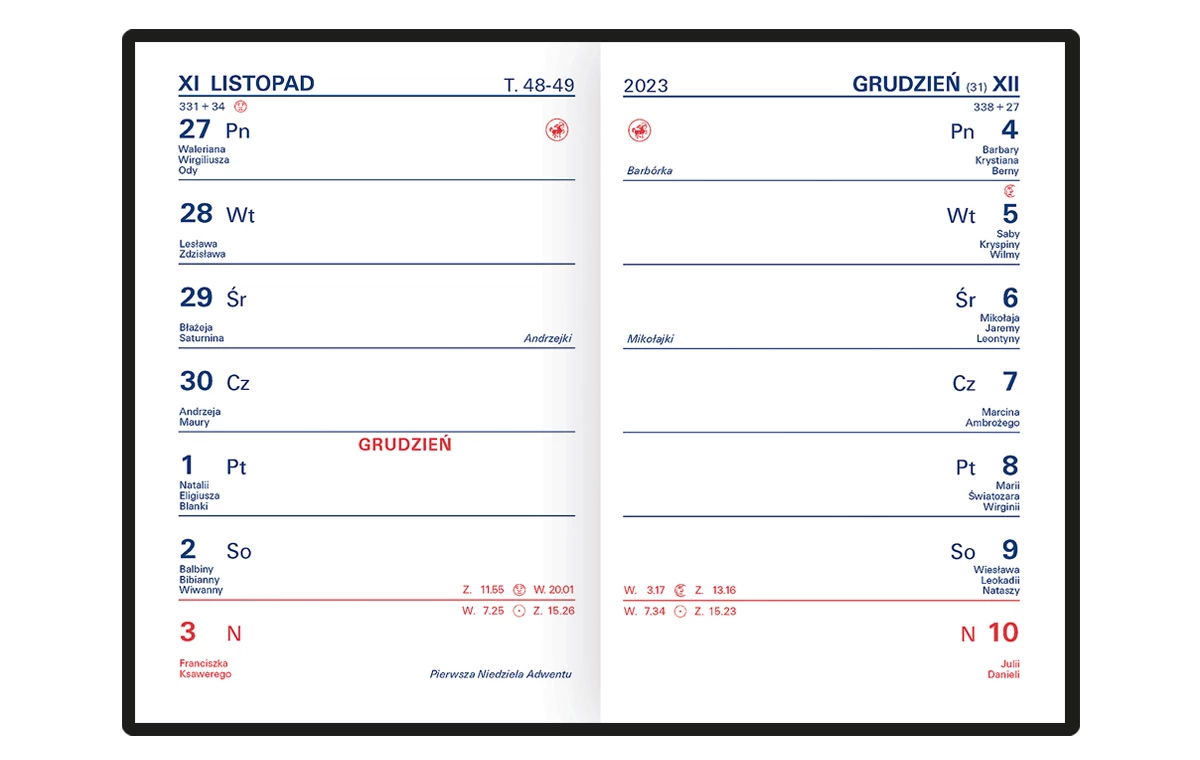 Ponadto jego budowa w formie notesu z podzialem na dni pozwala na zapisywanie waznych dla nas informacji, co sprawi, ze bedziesz miec pewnośc, ze nie ominely Cie, zadne wazne wydarzenia.