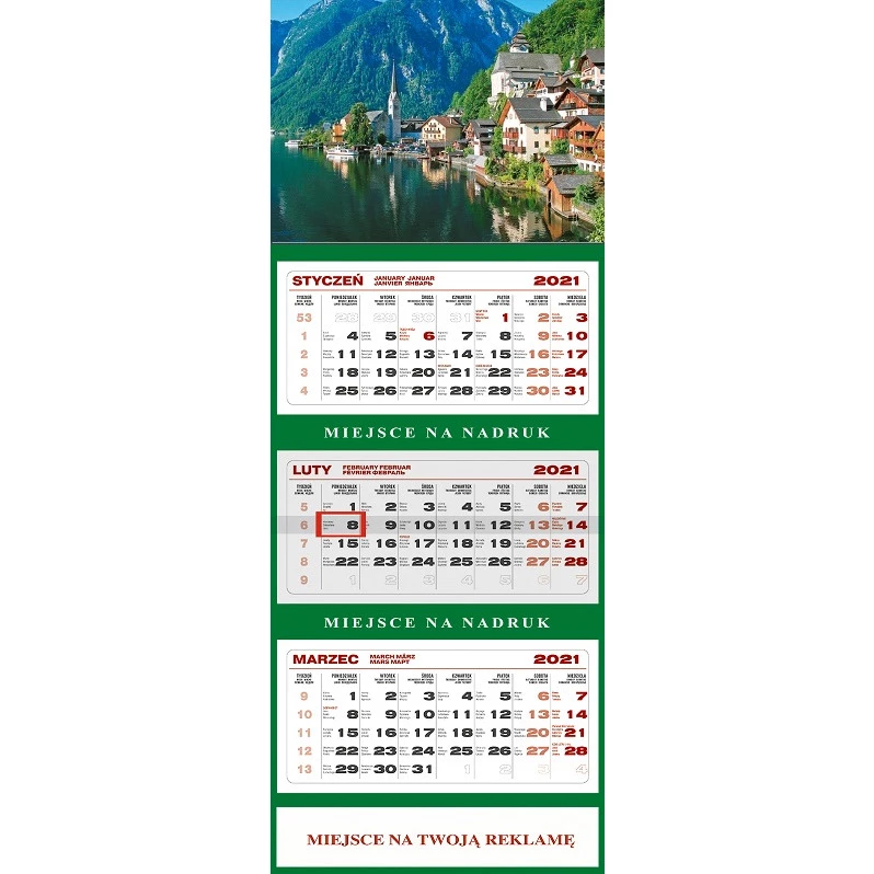 Możliwość wykonania nadruku reklamowego pomiędzy kalendariami oraz na dole kalendarza.