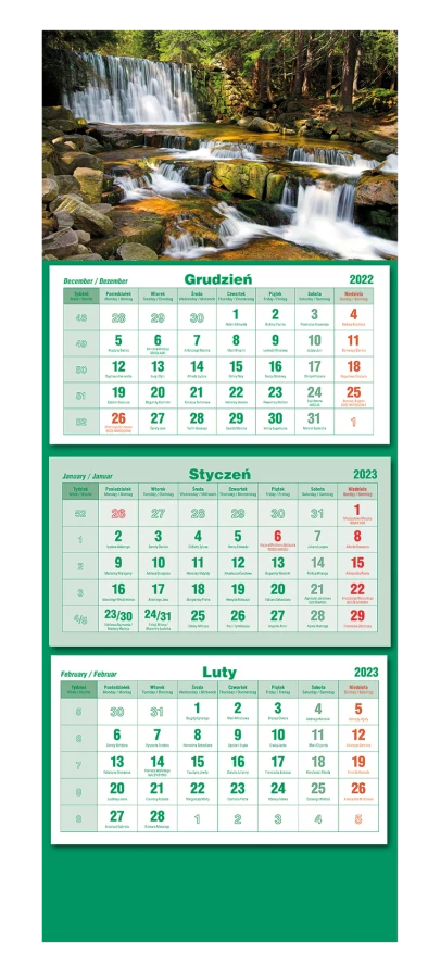Zostal zaprojektowany w taki sposób, abyś mial wszystkie niezbedne informacje pod reką. Uklad kalendarium obejmuje trzy miesiące, co ulatwia planowanie i monitorowanie waznych dat .