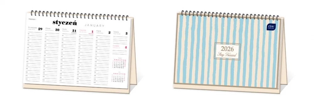 Kalendarz tygodniowy na biurko 21x30cm paski INTERDRUK