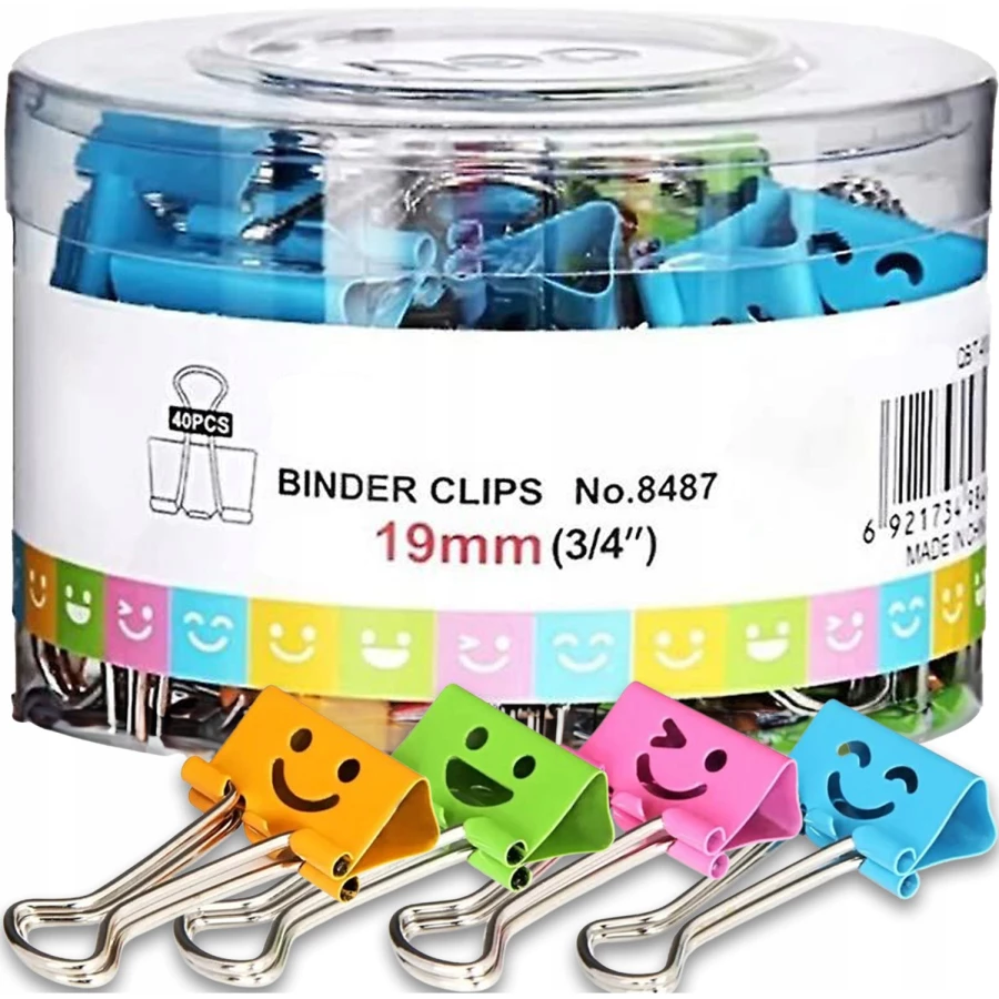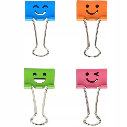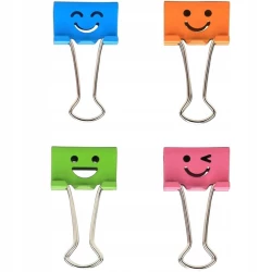 Kolorowe klipsy z wesołymi buźkami przeznaczone do spinania dokumentów, banknotów, etc.