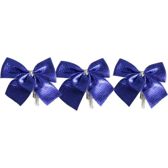 Gotowe kokardy, wykonane z materiału. Dla wygody każda z kokard wyposażona została w drucik ułatwiający jej dowiązanie do przedmiotu. Idealne do dekoracji choinek, gałązek, wianków, świeczników, prezentów. Szerokość: 50 mm. 12 szt.