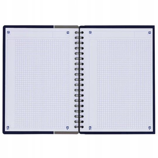 Polipropylenowa okladka zabezpiecza ich wnetrze, a podwójna spirala umozliwia otwarcie na plasko.