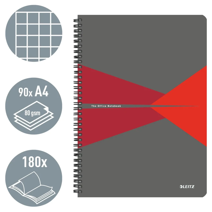 Kołonotatnik Office Card A4 w kratkę czerwony 46471025 LEITZ
