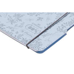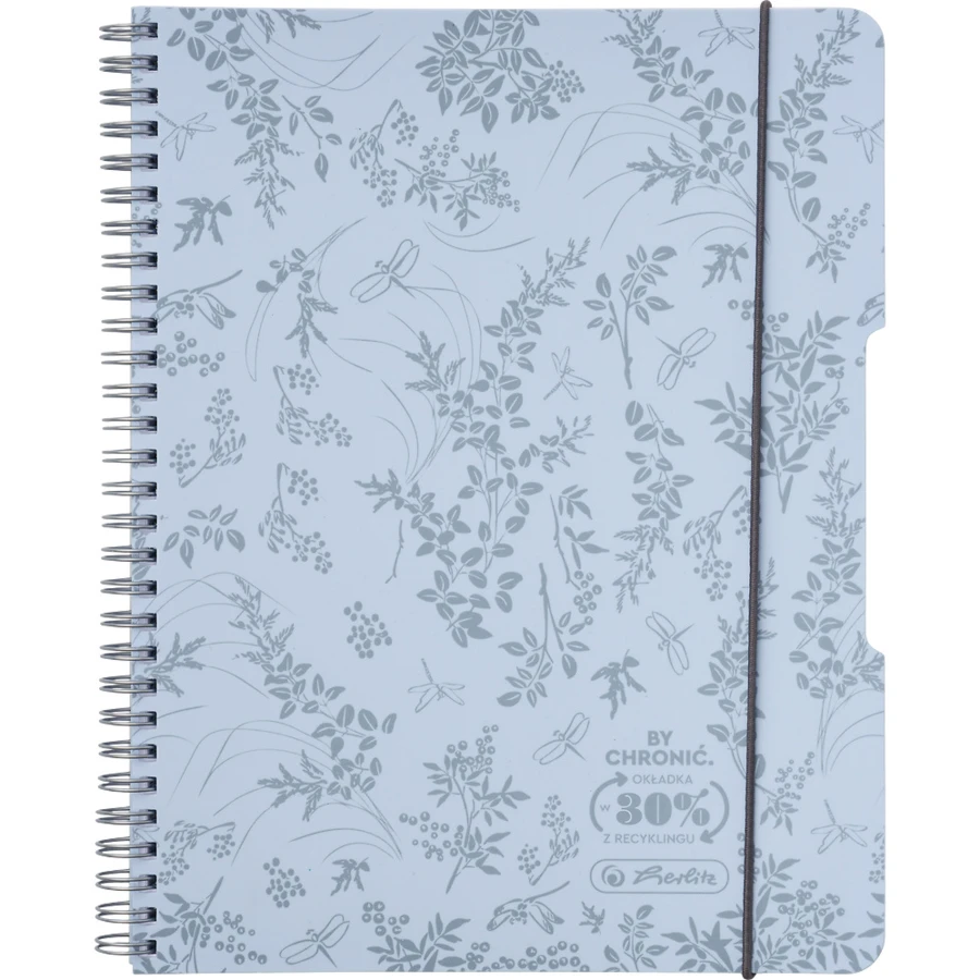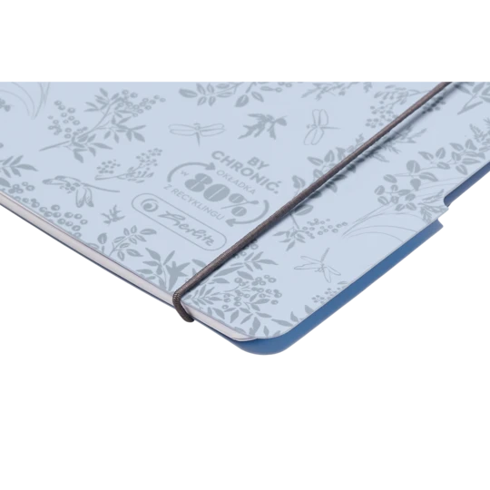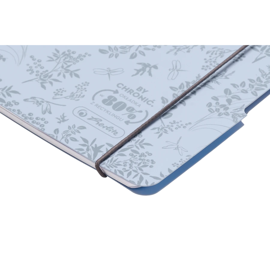 - Błękitny kolor okładki z botanicznym nadrukiem