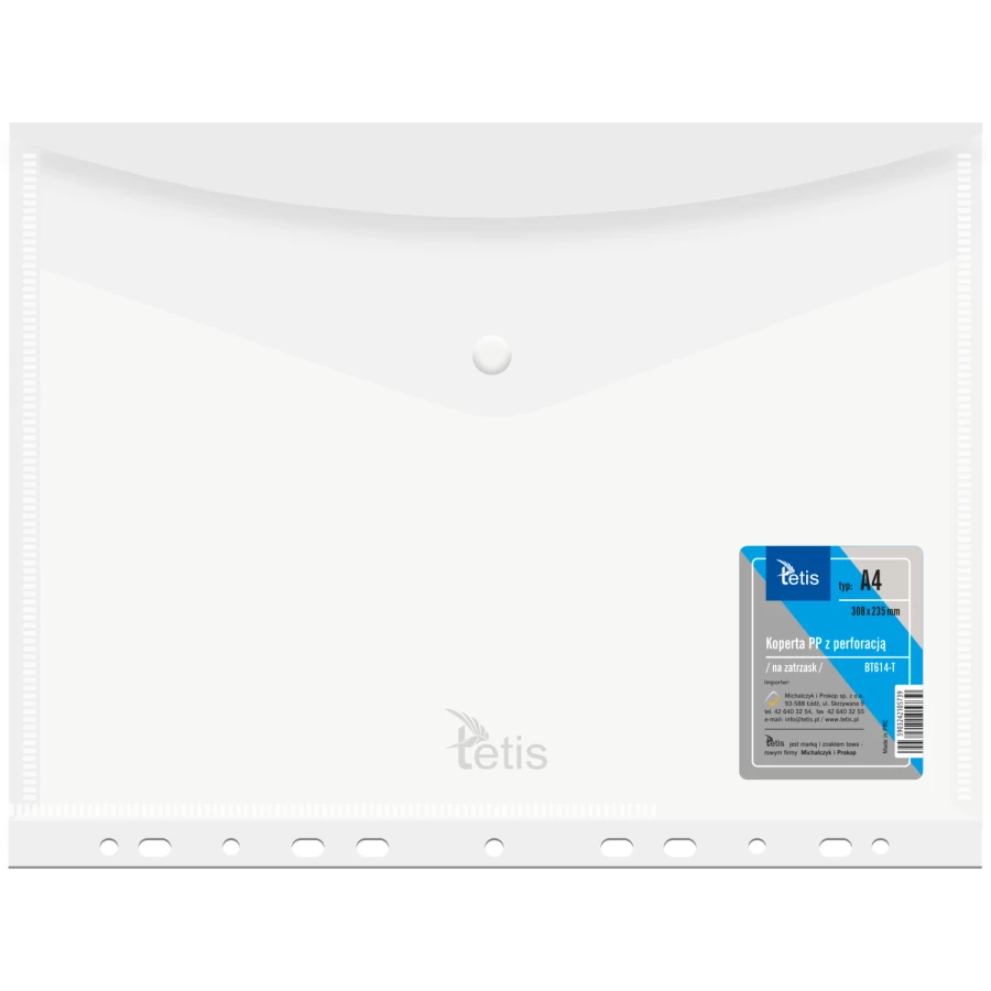 Koperta A4 PP na zatrzask z perforacją TRANSPARENTNA BT614-T TETIS