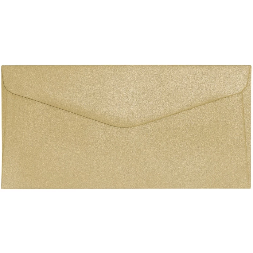 Złote koperty ozdobne Pearl DL marki Galeria Papieru. Wykonane z wysokiej jakości papieru, idealnie nadają się np. na zaproszenia.