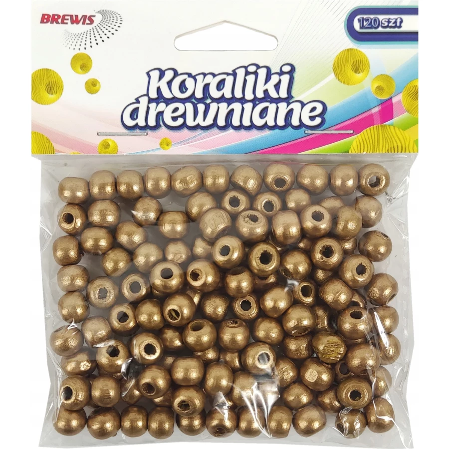 Koraliki drewniane 8mm złote (120sztuk - 18g) KD8-4 BREWIS