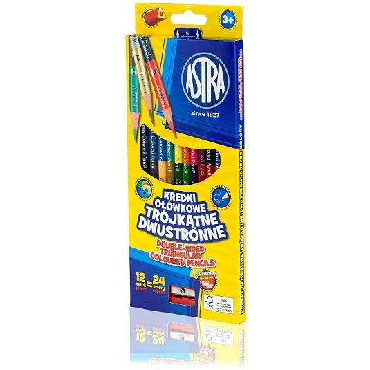 Kredki dwustronne 12=24kolory ołówkowe trójkątne z temperówką 312113001 ASTRA