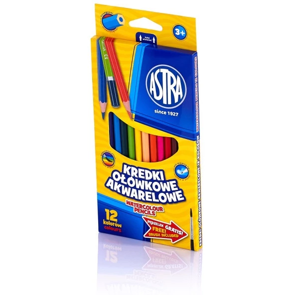 Kredki olówkowe akwarelowe 12 kolorów Astra