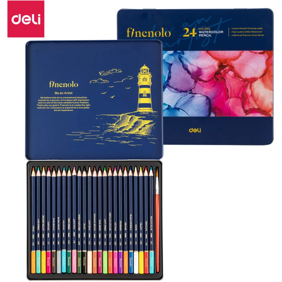 Kredki ołówkowe akwarelowe FINENOLO 24 kolory metalowe opakowanie C129-24 DELI