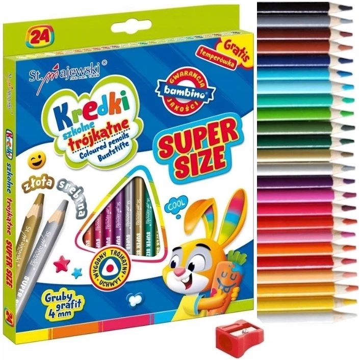 Kredki szkolne trójkątne super size 4mm 24 kol. + temp. standard ST.MAJEWSKI