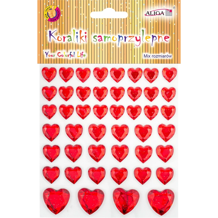 Dzety, krysztalki samoprzylepne w ksztalcie serca. Mix rozmiarów, kolor czerwony