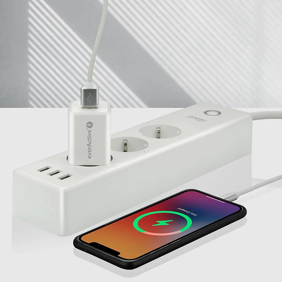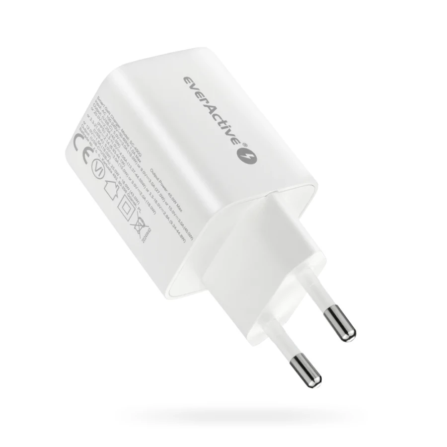 Ładowarka sieciowa 230V EVERACTIVE SC-390Q 1xUSB-C + 1xUSB 3A biała
